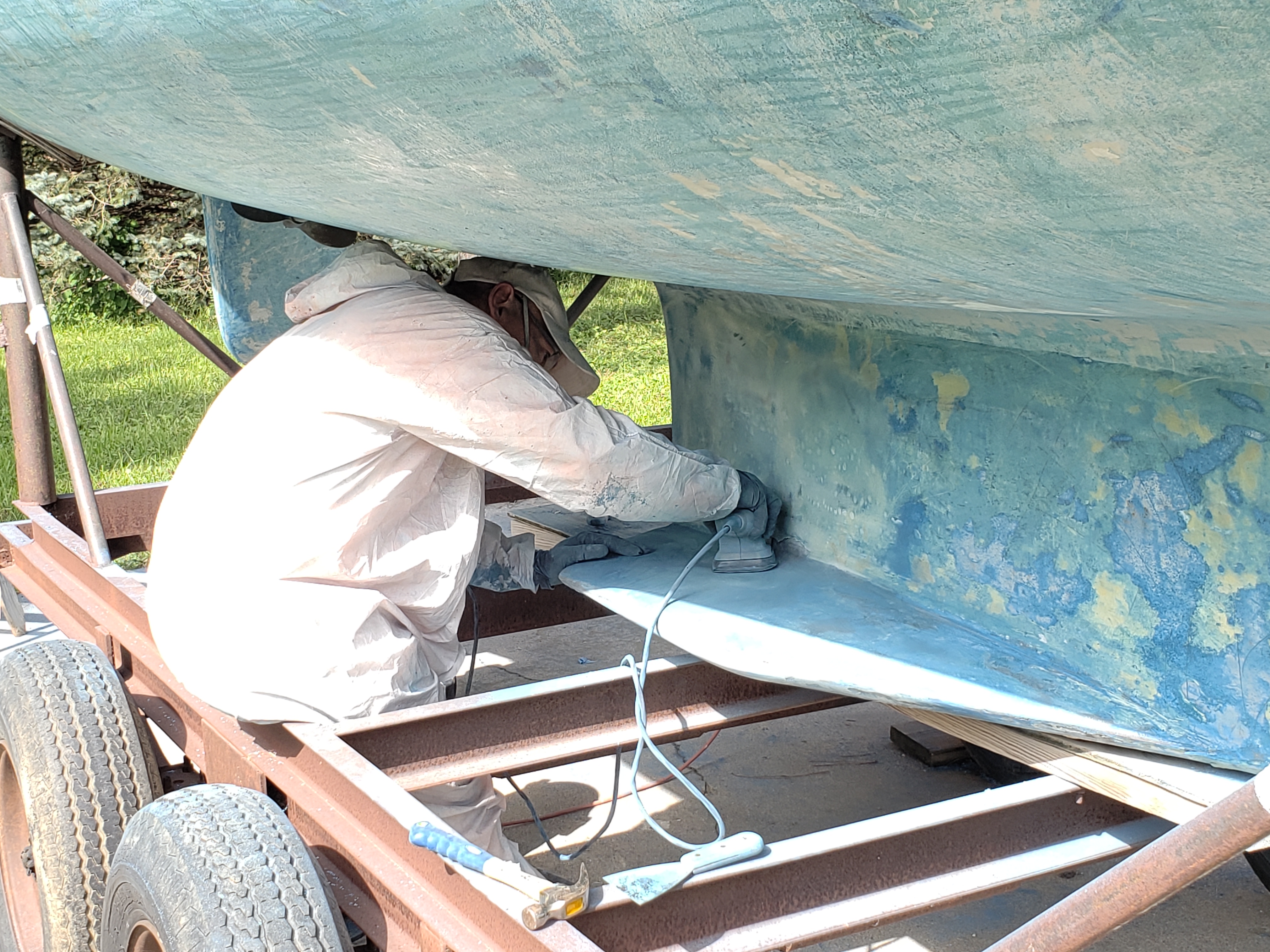Jeanie went on to recount the details of the discovery, “Whoever had stolen the boat had been a very busy beaver! She had been stripped of all hardware inside and out. The name had been removed and her old numbers had been replaced with numbers registered to a different boat. The mast had been unsuccessfully taken down and had crashed down onto the bow. Newly covered cushions were damaged and the brand-new sails that had only been used one summer were missing. The boat showed all signs of being lived in all summer!”